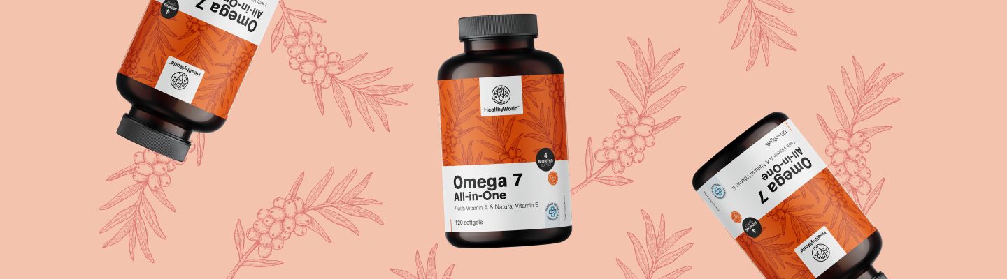 Die Kapseln Omega-7 All-in-One kombinieren 4 sorgfältig ausgewählte Fettsäuren: